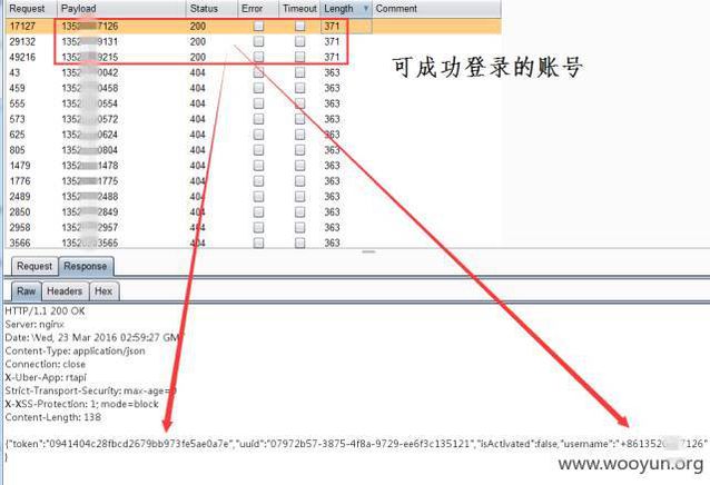這么多人發(fā)生這樣的事。?磥砜赡芨脚_本身有關(guān)。。。 果然,在 3 月 23 日,白帽子黑客 “ 土夫子 ” 在烏云網(wǎng)上宣布了優(yōu)步的漏洞。 漏洞標(biāo)題:Uber 優(yōu)步客戶端接口設(shè)計不當(dāng)可導(dǎo)致撞庫攻擊