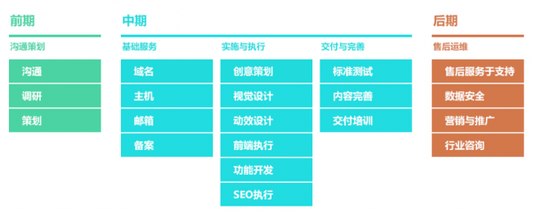 D.板塊欄目布局 針對(duì)首頁(yè)和欄目頁(yè),我們根據(jù)客戶需求進(jìn)行簡(jiǎn)樸樣板設(shè)計(jì),給出一個(gè)大體樣圖來(lái)給客戶看。這可認(rèn)為以后的細(xì)節(jié)調(diào)整做一些部署,究竟只有看過(guò)樣稿后客戶心里才能有所輪廓概念,這樣客戶的要求也能更好地有針對(duì)性,我們今后修改起來(lái)也更加順手利便。 E.響應(yīng)式網(wǎng)站建設(shè)方式 這個(gè)部門算作一個(gè)擴(kuò)展知識(shí),為客戶簡(jiǎn)述當(dāng)前流行的網(wǎng)站開發(fā)方式,一來(lái)可以令客戶了解一下行業(yè)動(dòng)態(tài),二來(lái)展現(xiàn)我們開發(fā)公司緊跟時(shí)代潮流,技術(shù)手段始終不斷提高,給客戶帶來(lái)一個(gè)好的印象。 F.項(xiàng)目建設(shè)流程周期及預(yù)算 這部門為網(wǎng)站建設(shè)流程步驟,可以通用,具體信息見下圖所示。