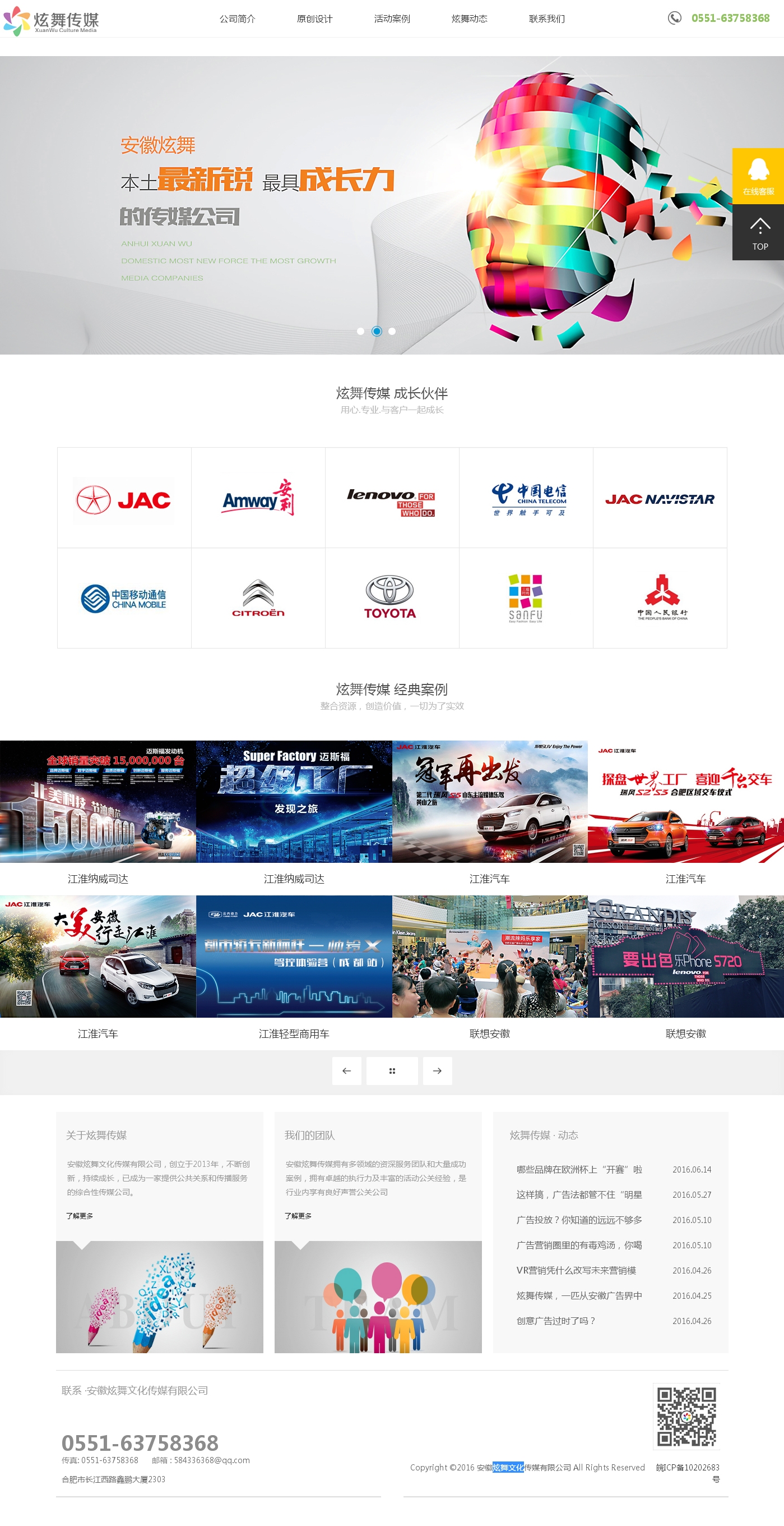 客戶案例:http: www ahxuanwu cn 安徽炫舞文化傳媒有限公司創(chuàng)立于2013年,不斷創(chuàng)新,持續(xù)成長已成為一家提供公共關(guān)系和傳播服務的綜合性