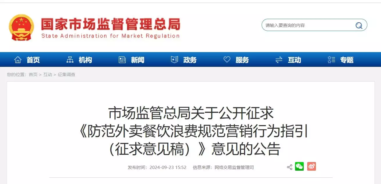 市場(chǎng)監(jiān)管總局 9 月 23 日發(fā)布公告,公開征求《防范外賣餐飲浪費(fèi)規(guī)范營(yíng)銷行為指引(征求意見稿)》(下稱《征求意見稿》)意見。市場(chǎng)監(jiān)管總局鼓勵(lì)外賣商家合理設(shè)置起送價(jià)格并積極提供小份餐品具有多方面的積極意義。