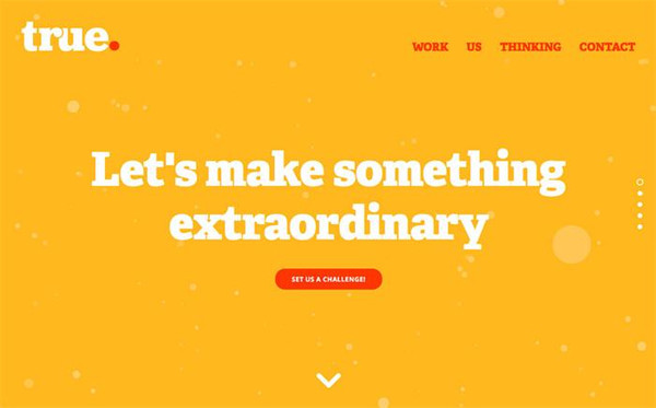 ·單頁設(shè)計(jì):為了最大限度地呈現(xiàn)出各種設(shè)計(jì)效果,這些網(wǎng)站通常會(huì)沿用之前的單頁設(shè)計(jì),有些網(wǎng)站會(huì)加入尺度化的導(dǎo)航來引導(dǎo)用戶進(jìn)入其他的內(nèi)頁。