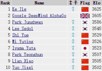 在那之后,地球上獨(dú)一排名在他前面的,就只剩18歲的中國(guó)棋手柯潔了。