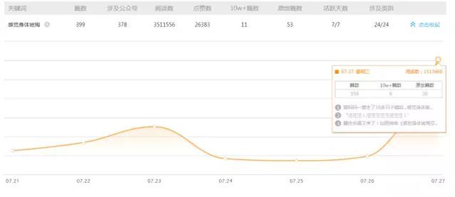 由于被大量公家號轉(zhuǎn)發(fā),《感覺身體被掏空》在騰訊視頻的播放量達(dá)到252萬。另外,固然B站并非首發(fā)平臺,但播放量也高達(dá)137萬,彈幕數(shù)達(dá)3800條,珍藏量也達(dá)到一萬多。 通過新榜的數(shù)據(jù)產(chǎn)品“趨勢查詢”,分別輸入樞紐詞“彩虹合唱團”和“感覺身體被掏空”可以發(fā)現(xiàn),兩個樞紐詞都在昨天達(dá)到了峰值。