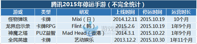 不外,在2015年,騰訊發(fā)行的產(chǎn)品中,據(jù)不完全統(tǒng)計已泛起4款停運游戲且集中在10月份。