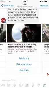 上月,F(xiàn)acebook開放了它們的動靜平臺,讓任何企業(yè)創(chuàng)建的聊天機器人與9億用戶直接交流。 CNN是四月首批推出機器人的內(nèi)容供給商,并且可以供全球觀眾使用。CNN目前擁有2150萬FB粉絲,CNN國際頻道也擁有1160萬,他們的聊天機器人可以知足所有這些粉絲,負責照看機器人的團隊隸屬于CNN環(huán)球數(shù)字部分。 CNN聊天機器人的目標,是通過吸引全球各地新的觀眾、提供應他們更加個性化的新聞體驗,來擴大自身的國際影響力。 “動靜類應用對新聞來說是個成熟的平臺,由于這里可以一對一的交流,但是也可以作為媒體,大規(guī)模的廣播動靜。這就是其令人高興的原因所在。四大通信應用已經(jīng)超越了四大社交平臺。”Wellen如是說。 CNN聊天機器人推出已近一月,他們都有哪些重要的發(fā)現(xiàn)呢? 哪里流血,哪里就能引發(fā)關注