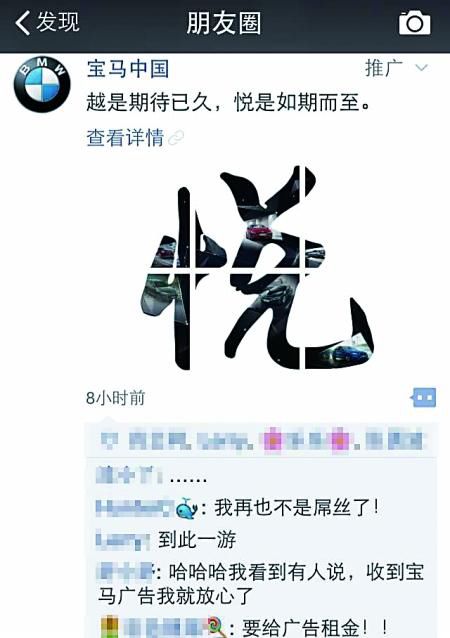 實(shí)在,想想這招微信也用過,只不外推送的廣告,常常被屏蔽,而且不同用戶接受的不同,好像也在暴露階層差異引發(fā)網(wǎng)友狂噴:憑什么人家推送寶馬中國給我推送可口可樂?這簡直是赤果果的歧視!不能忍!小樣兒,你過來,我保證不打死你!