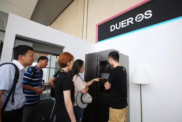 圖示:現(xiàn)場觀眾體會搭載了DuerOS技能的智能冰箱)