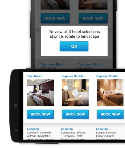 9、告知用戶選擇更公道的屏幕方向 不同的屏幕方向下,用戶的瀏覽體驗會完全不同的。用戶慣于在統(tǒng)一屏幕方向下完玉成部的操縱,所以提醒他們切換方向可以晉升網(wǎng)站瀏覽的用戶體驗。所以,當你的網(wǎng)站偏向展示性,并且使用橫屏時瀏覽體驗更佳的話,不妨使用行為召喚設計來提示用戶。