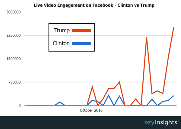 特朗普在Twitter上的粉絲為1320萬,F(xiàn)acebook上的粉絲為1260萬,一年中共獲得3.8億美元免費(fèi)曝光量。而希拉里的這一數(shù)字分別是1040萬、852萬和1億美元免費(fèi)曝光量。