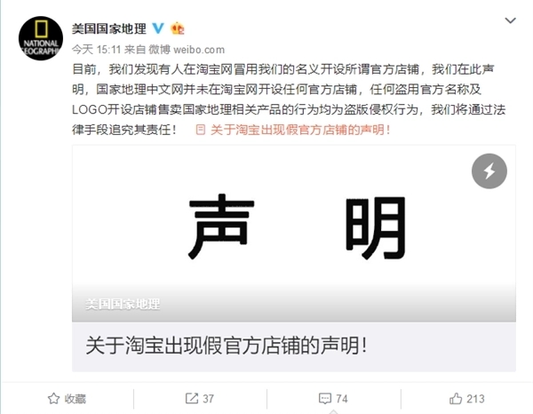 12月6日,美國(guó)國(guó)家地理官方微博發(fā)布聲明稱,淘寶有店肆盜用自己的Logo,出售盜版日歷,將會(huì)通過法律手段保護(hù)公司的權(quán)益和利益。