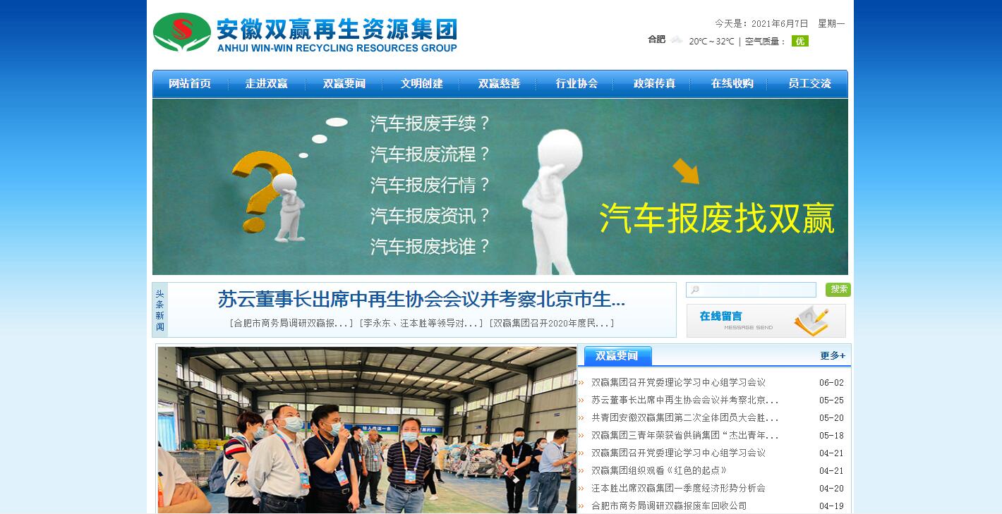 安徽雙贏再生資源集團(tuán)(簡稱安徽雙贏集團(tuán))由安徽省供銷商業(yè)總公司控股,安徽雙贏再生資源集團(tuán)有限公司為母公司,總注冊資本15億元,現(xiàn)有總資產(chǎn)169億元。